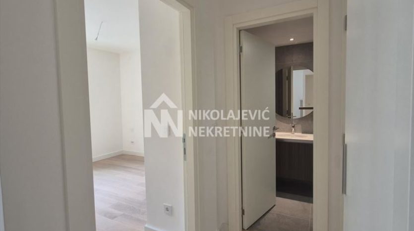 Na ekstra lokaciji u novoj zgradi Eterna na BW, nov jos neuseljavan stan. Objekat je vrhunskog kvaliteta i luksuza ,sa video nadzorom i recepcijom 24/7 .Stan je svetao i osunčan severo -zapadno orijentisan sa otvorenim pogledom ka privatnom parku i gradskoj panorami .Ima veliki dnevni boravak sa komotnim kuhinjsko- trpezarijskim delom i velikom lođom.Izdvojena spavaća soba,veliko kupatilo sa kvalitetnim geberit sanitarijama,staklenom tuš kabinom i posebnom prostorijom za garderober i laundry.U stanu su ugrađena 2.klima uređaja,ima blindirana vrata,visina plafona je H=2,8,prozori su višekomorni aluprofili sa automatskm podizačima roletni. U zgradi je garažno mesto ,komunikacija je liftom unutar objekta .Cena garažnog mesta je +29.000€ .Lokacija pruža ugođaj kvalitetnog i mirnog stanovanja,pored reke.Nedaleko je TC Galeraija i mnogobrojni marketi restorani ,fitnes centri i šetalište Sava promenada.Lokacija je dobro povezana sa ostalim delovima grada.