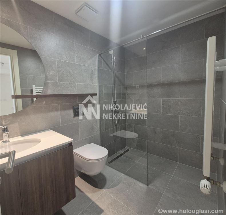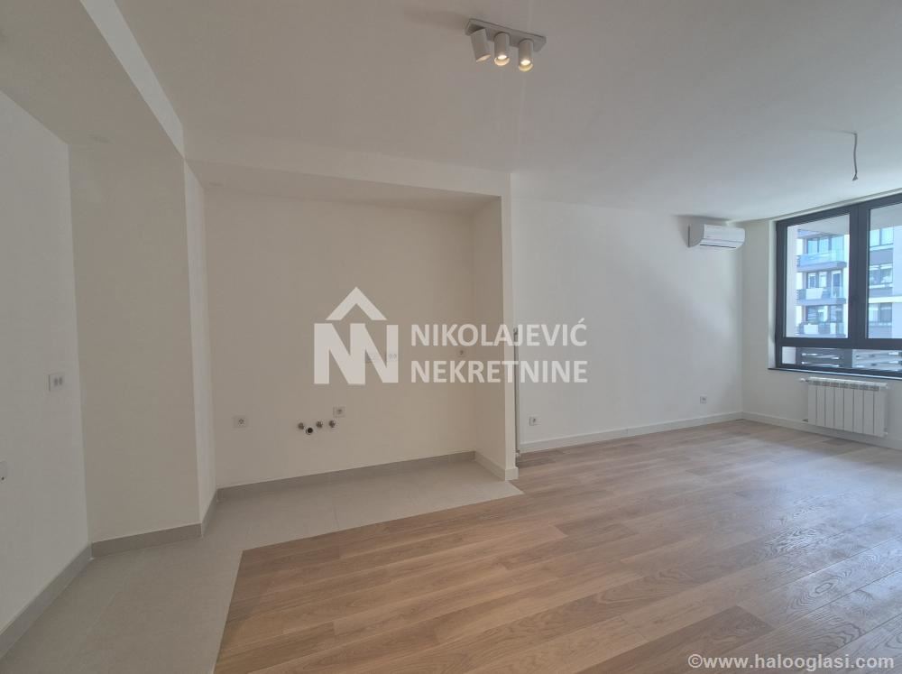 Na ekstra lokaciji u novoj zgradi Eterna na BW, nov jos neuseljavan stan. Objekat je vrhunskog kvaliteta i luksuza ,sa video nadzorom i recepcijom 24/7 .Stan je svetao i osunčan severo -zapadno orijentisan sa otvorenim pogledom ka privatnom parku i gradskoj panorami .Ima veliki dnevni boravak sa komotnim kuhinjsko- trpezarijskim delom i velikom lođom.Izdvojena spavaća soba,veliko kupatilo sa kvalitetnim geberit sanitarijama,staklenom tuš kabinom i posebnom prostorijom za garderober i laundry.U stanu su ugrađena 2.klima uređaja,ima blindirana vrata,visina plafona je H=2,8,prozori su višekomorni aluprofili sa automatskm podizačima roletni. U zgradi je garažno mesto ,komunikacija je liftom unutar objekta .Cena garažnog mesta je +29.000€ .Lokacija pruža ugođaj kvalitetnog i mirnog stanovanja,pored reke.Nedaleko je TC Galeraija i mnogobrojni marketi restorani ,fitnes centri i šetalište Sava promenada.Lokacija je dobro povezana sa ostalim delovima grada.