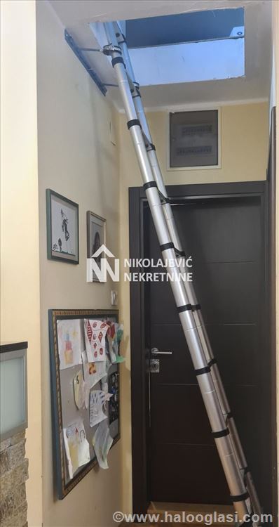 Na atraktivnoj lokaciji u Višnjičkoj banji ,lepo sređen svetao stan u zgradi -preko puta parka. Zgrada je iz 2005,očuvana sa 5.stanova i svojim dvorištem i zelenom baštom ,koja pruža osećaj privatnosti i lepog porodičnog stanovanja. Stan je u dva nivoa : donji ima dnevno trpezarijski deo, izdvojenu kuhinju,jednu spavaću sobu i komotno kupatilo sa prirodnom ventilacijom. Gornji nivo ima veliku spavaću sobu ,pogodnu za dvoje. Donji nivo ima 35m2(uknjiženo 34m2) +potkrovlje 20m2-neuknjiženo.Stan je kompletno opremljen sa novim kuhinjskim elementima ,belom tehnikom,dnevnom ugaonom garniturom,ugradnim plakarima,novim PVC prozorima,komarnicima .EG je grejanje na struju ,ceo je klimatizovan, ima blind vrata,alarm. Pored zgrade uvek ima slobodnog parkinga.Lokacija je blizu Osnovne škole,vrtića,autobuskih stanica.Nedaleko su i Marina u Višnjici i šetališta kao i mnogi restorani pored Dunava,teniski tereni,Dobro je snabdevanje ima nekoliko marketa u neposrednoj blizini i TC Big feshion,LIDL na Karaburmi. .Dobro je povezana saobraćajnicama i gradskim prevozom sa ostalim delovima grada. Kontakt agenta: 066-813-0001
